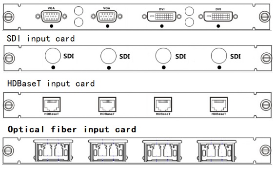 HC2000 seamless hybrid matrixisconsisted of maincabinet, input and output cards and communication card: