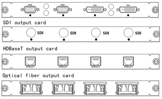 ⊙ Hybrid output card (4 optional interfaces, CVBS, VGA, YPbPr, HDMI, DVI, SDI)