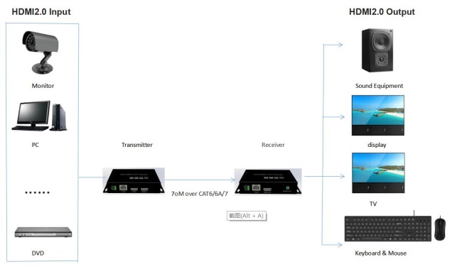 ·Transmission of 4K 60Hz HDMI signal 70m over CAT6;