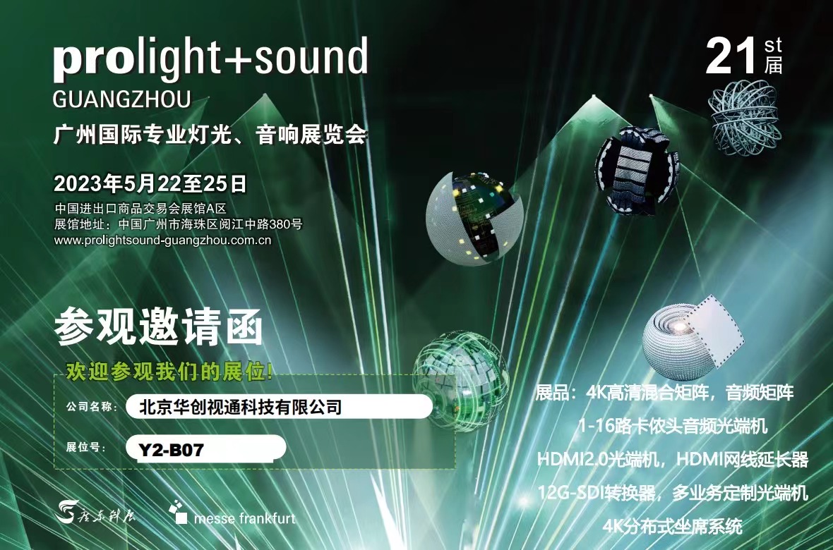 2023年第21屆廣州國際專業(yè)燈光,音響展覽會(huì) ;地點(diǎn):廣交會(huì)展館A區(qū),Y2-B07 時(shí)間:5月22至25日 主營產(chǎn)品:4k HDMI光端機(jī),HDMI2.0網(wǎng)線延長器,HDMI 2.0光釬線,HDbaseT網(wǎng)線延長器;4K分布式KV