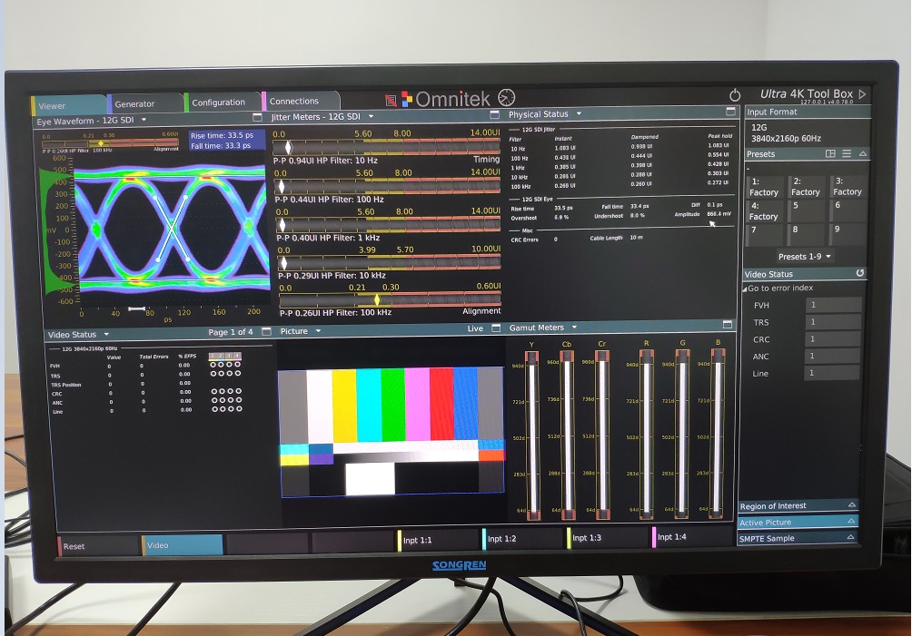 近日,北京華創(chuàng)視通研發(fā)的12G-SDI光端機(jī),通過(guò)專業(yè)儀器測(cè)試,滿足12G-SDI所有物理特性;其中上升下降時(shí)間:34.1PS,抖動(dòng):0.258;電平:730mv;視頻分辨率4096*2160,60Hz;