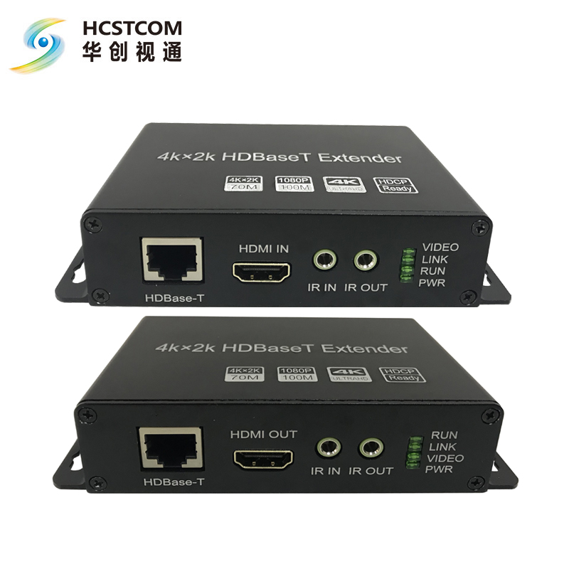 北京華創(chuàng)視通研發(fā)生產(chǎn)的HDBase-T HDMI網(wǎng)線延長(zhǎng)器產(chǎn)品是通過CAT6以上規(guī)格的單根網(wǎng)線將HDMI 4K音視頻信號(hào)高清無(wú)壓縮傳輸至100米,在為用戶降低成本的同時(shí)保證信號(hào)的穩(wěn)定。本產(chǎn)品支持雙向紅外信號(hào)回傳,RS232串口數(shù)據(jù)透?jìng)鳎琀DBase-T延長(zhǎng)器透?jìng)鱁DID,HDCP功能極大的提升了設(shè)備的兼容性。該設(shè)備具有傳輸距離遠(yuǎn)、使用成本低、安裝方便、兼容性好、是一種穩(wěn)定高效的傳輸方式,廣泛應(yīng)用于高清會(huì)議系統(tǒng),高清影視拍攝,高清教學(xué)系統(tǒng),高清數(shù)字廣告等的音視頻傳輸。
