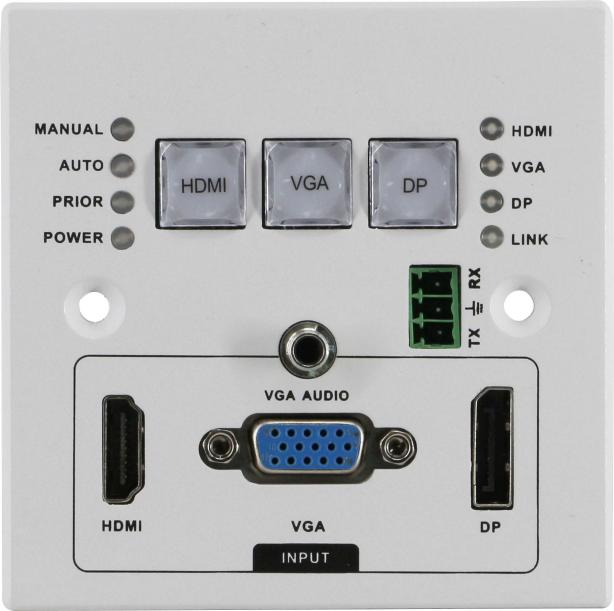 86型HDMI+DP+VGA墻插發(fā)射器 HDBaseT地插發(fā)射器 HDBaseT桌插發(fā)射器 北京華創(chuàng)視通生產(chǎn)廠家;能夠?qū)⑤斎氲腍DMI、DP、VGA信號,以及一路音頻信號,轉(zhuǎn)換成標(biāo)準的HDBaseT信號。本HDBaseT墻插發(fā)射器還支持POC供電,可以通過矩陣或者其他HDBaseT設(shè)備獲取電源,并支持RS232控制。